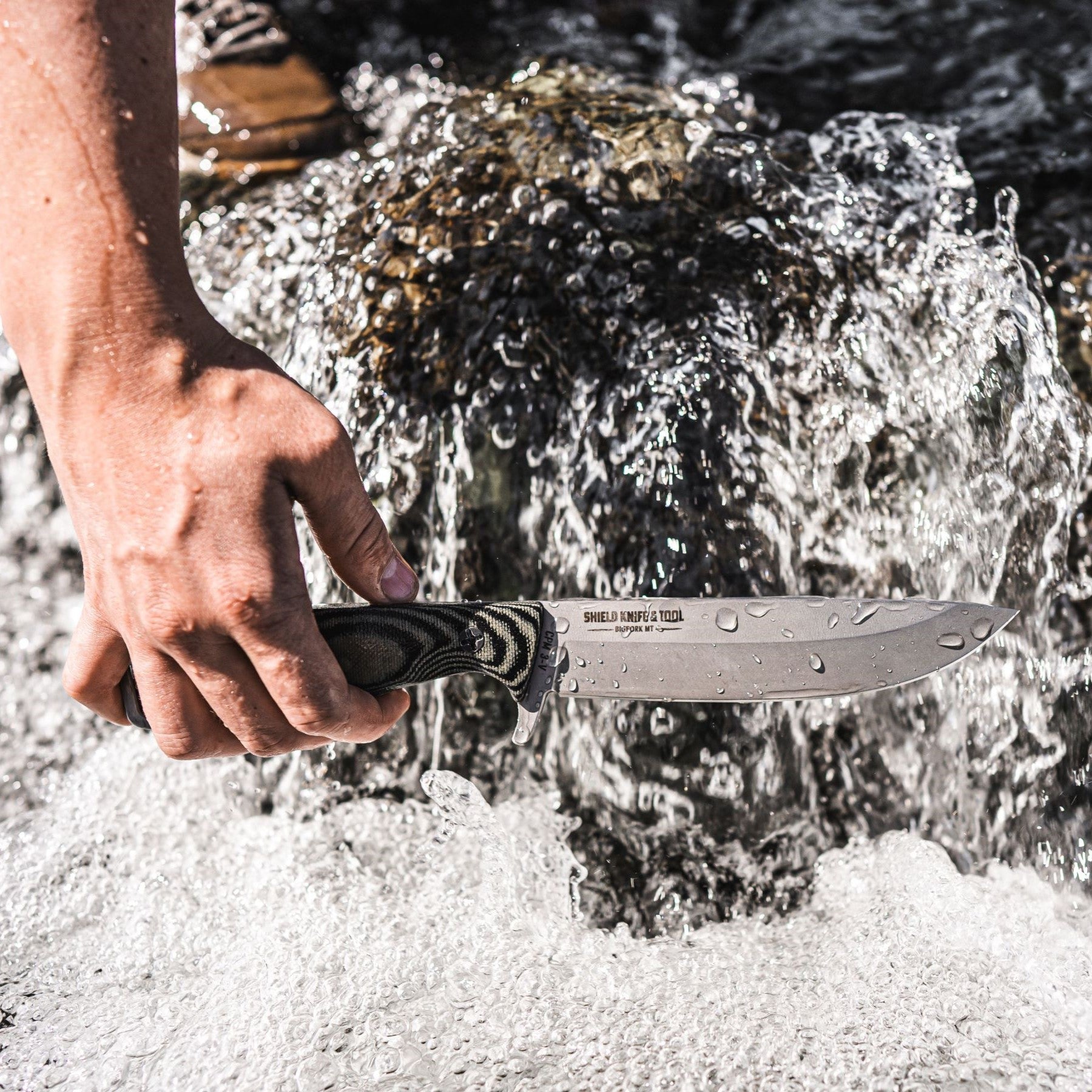 The Bob features a full-tang construction using CPM-3V for incredible toughness and edge retention to withstand rigorous long-term use. It features a built in guard to prevent your hand from slipping onto the cutting edge, a drop point blade shape, and a high flat grind to excel at a variety of tasks. From shelter and fire building to food prep to the bug out bag, The Bob's ~6" blade is up to the task.